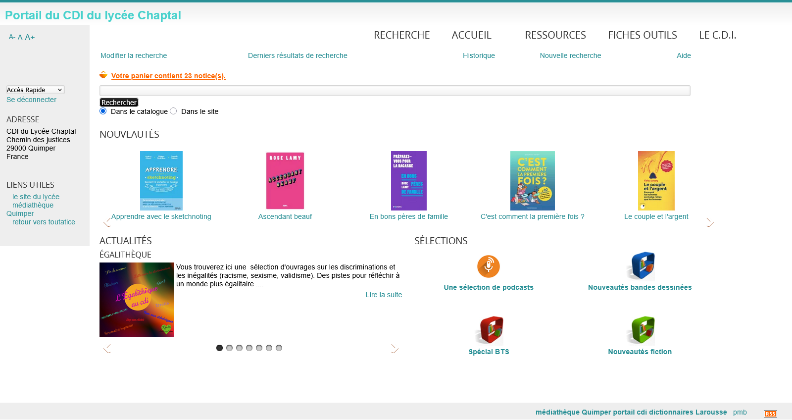 le catalogue en ligne Vous pouvez consulter l’ensemble des ressources disponibles en suivant ce lien